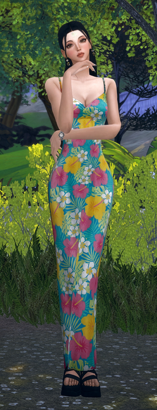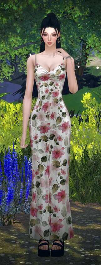 Spring-inspired maxi in breezy motifs, perfect for spring-related events and activities, picnics, nature walks, tea parties, vacations or casual.